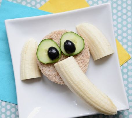- Use a whole banana and place it on the rice cake/bread as an elephant nose.