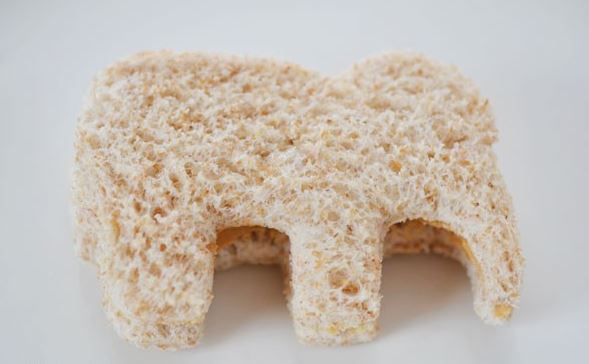 - Use a whole banana and place it on the rice cake/bread as an elephant nose.